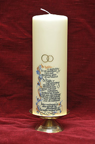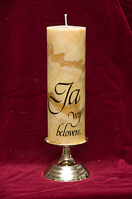 Beste, Op deze pagina vindt u een overzicht van de Huwelijkskaarsen. Onder de afbeelding staat het bestelnummer. Bij dubbelklik op de afbeelding van de kaars, wordt de afbeelding uitvergroot. Al deze kaarsen zijn verkrijgbaar bij : Liturgisch Centrum - Abdij Dendermonde Dijkstraat 32-34, 9200 Dendermonde, Tel. 052 33 87 86, info@abdijdendermonde.be |