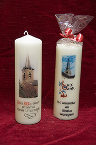 Beste, Op deze pagina vindt u een overzicht van diverse kaarsen uit de liturgie. O.a. ook kaarsen, die specifiek uitgaan van een bepaalde parochie, als aandenken van doopsel, communie, enz.. Onder de afbeelding staat het bestelnummer. Bij dubbelklik op de afbeelding van de kaars, wordt de afbeelding uitvergroot. Al deze kaarsen zijn verkrijgbaar bij : Liturgisch Centrum - Abdij Dendermonde Dijkstraat 32-34, 9200 Dendermonde, Tel. 052 33 87 86, info@abdijdendermonde.be |